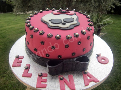 Elena tenía dudas sobre el tema de su tarta, y al fin se decidió por las Monster High. En este caso el bizcocho era sabor a fresa. Compré un saborizante de fresa en keyks que está de muerte. Preparé el bizcocho de yogurt y lo rellené de nata vegetal... parecía que estábamos comiendo fresas con nata!!!.